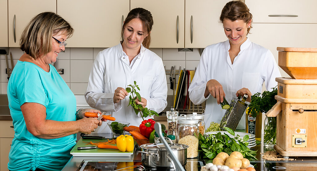 Eine ausgewogene Ernährung ist ein wichtiger Baustein Ihrer Genesung. In der Argentalklinik bieten wir Ihnen verschiedene Kostformen an, die auf Ihre gesundheitlichen Bedürfnisse abgestimmt sind – von Vollkost und leichter Vollkost über vegetarische und purinarme Kost bis hin zur Fitkost, die fett- und cholesterinreduziert ist. Zweimal wöchentlich servieren wir zudem ein veganes Mittagessen. Wenn medizinisch erforderlich, stellen wir spezielle Diäten bereit. Ergänzt wird unser Angebot durch persönliche Beratungsgespräche, praxisnahe Schulungen in der Lehrküche und informative Ernährungsseminare. So unterstützen wir Sie dabei, auch nach der Reha gesunde Essgewohnheiten beizubehalten.