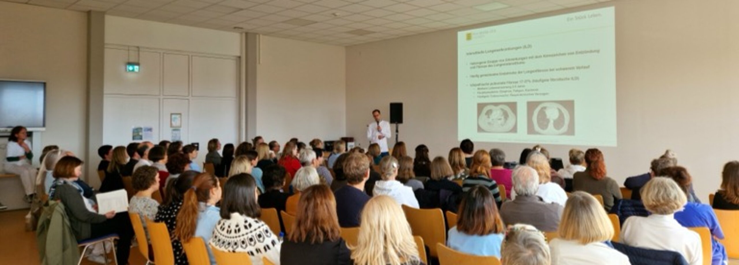 Im Mittelpunkt der Veranstaltung stand die palliative Versorgung von Menschen mit fortgeschrittenen Lungenerkrankungen. Palliative Versorgung bedeutet, Linderung von Beschwerden bei einer fortschreitenden, unheilbaren Krankheit, die sich auf die Lebensqualität des Patienten und seinen Familien konzentriert. Besprochen wurde unter anderem das pflegerische Symptommanagement, atemtherapeutische Möglichkeiten und interdisziplinäre Zusammen-arbeit. Auch die Bedeutung einfühlsamer Kommunikation am Lebensende wurde aus verschiedenen Perspektiven beleuchtet.