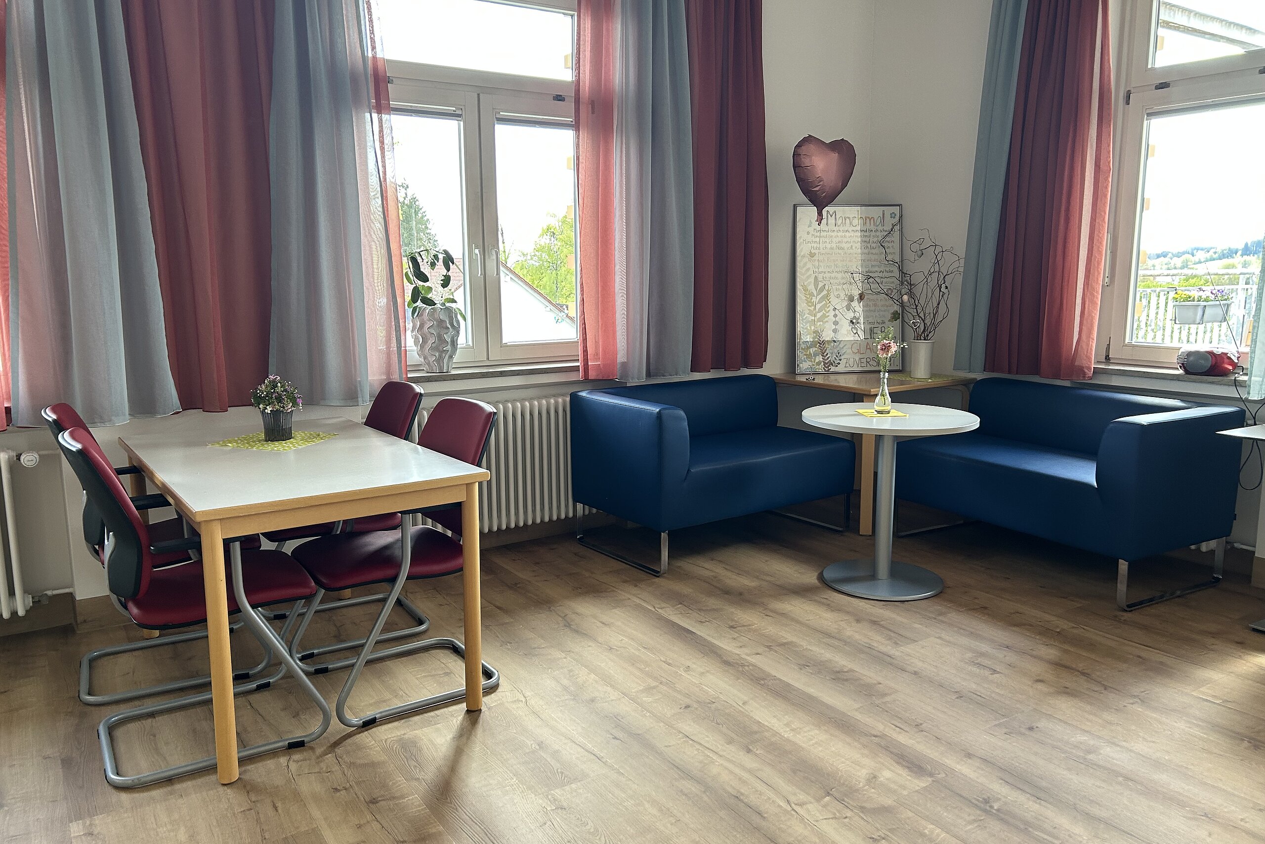 In unserer Cafeteria, im außergewöhnlichen Ambiente einer ehemaligen Kapelle, nehmen die Kinder und Jugendliche mit ihren Begleitpersonen aus der Rehabilitationsklinik für Kinder und Jugendliche alle Mahlzeiten ein.