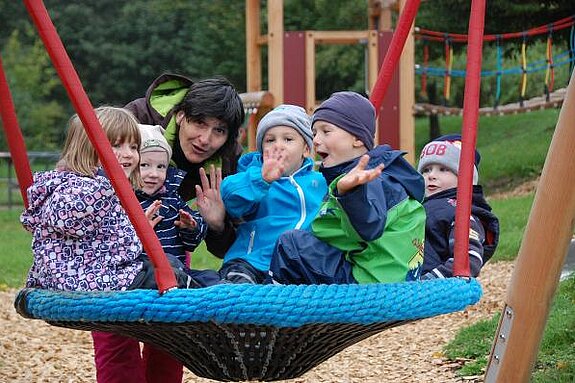 Mehrere kindgerechte Spielplätze auf dem Klinikgelände bieten unseren jungen Rehabilitandinnen und Rehabilitanden viel Platz für Bewegung und Spiel an der frischen Luft.