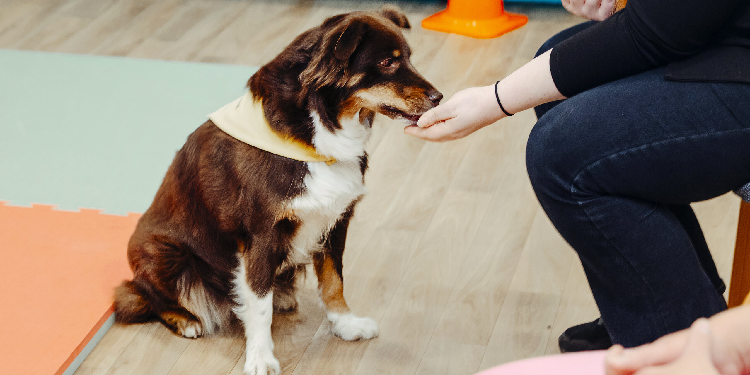 Fay ist ein Australian Shepherd. „Diese Hunderasse ist nicht unbedingt geeignet als Therapiehund, aber sie lernt schnell“, sagt Chefärztin Dr. Heuckeroth. „Fay ist sehr menschenfreundlich und arbeitet gern. Diese Voraussetzungen sind aber unabhängig von der Hunderasse.“ Die Ausbildung eines Therapiehunds ist umfangreich: Je nach Anbieter erstreckt sie sich oft über Jahre und kostet mehrere Tausend Euro.