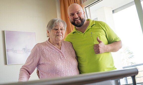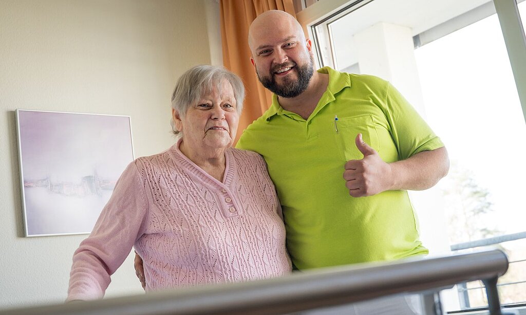 Der Weg zu ihrem Liebsten misst nur wenige Fußschritte. Trotzdem blieb er Ursel Kaiser zuletzt verwehrt, weil sie nicht mehr gehen konnte. Das Paar trennt im Seniorenzentrum nur eine Zimmerwand. Doch die 83-Jährige hatte Glück. Wenn sie ihren 96-jährigen Lebensgefährten heute besuchen möchte, geht sie einfach mit ihrem Rollator zu ihm hinüber. Und wenn sie Lust hat, dreht sie noch eine Runde durchs Haus und ums Haus herum. „Insgesamt bin ich täglich etwa eine Stunde auf den Beinen“, sagt sie stolz.