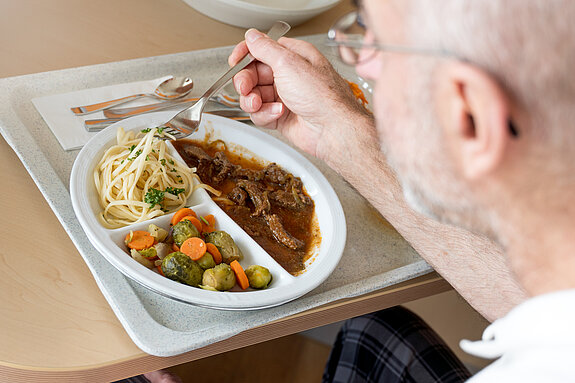 „Es hat mir einfach der Hals zugemacht – wie zugeschnürt“, erinnert sich Herr Bitzer. „Es ging nichts mehr rein – ich konnte weder essen noch trinken.“ Im Krankenhaus wurde er notversorgt, eine Ernährungssonde durch die Bauchdecke sicherte seine Ernährung.