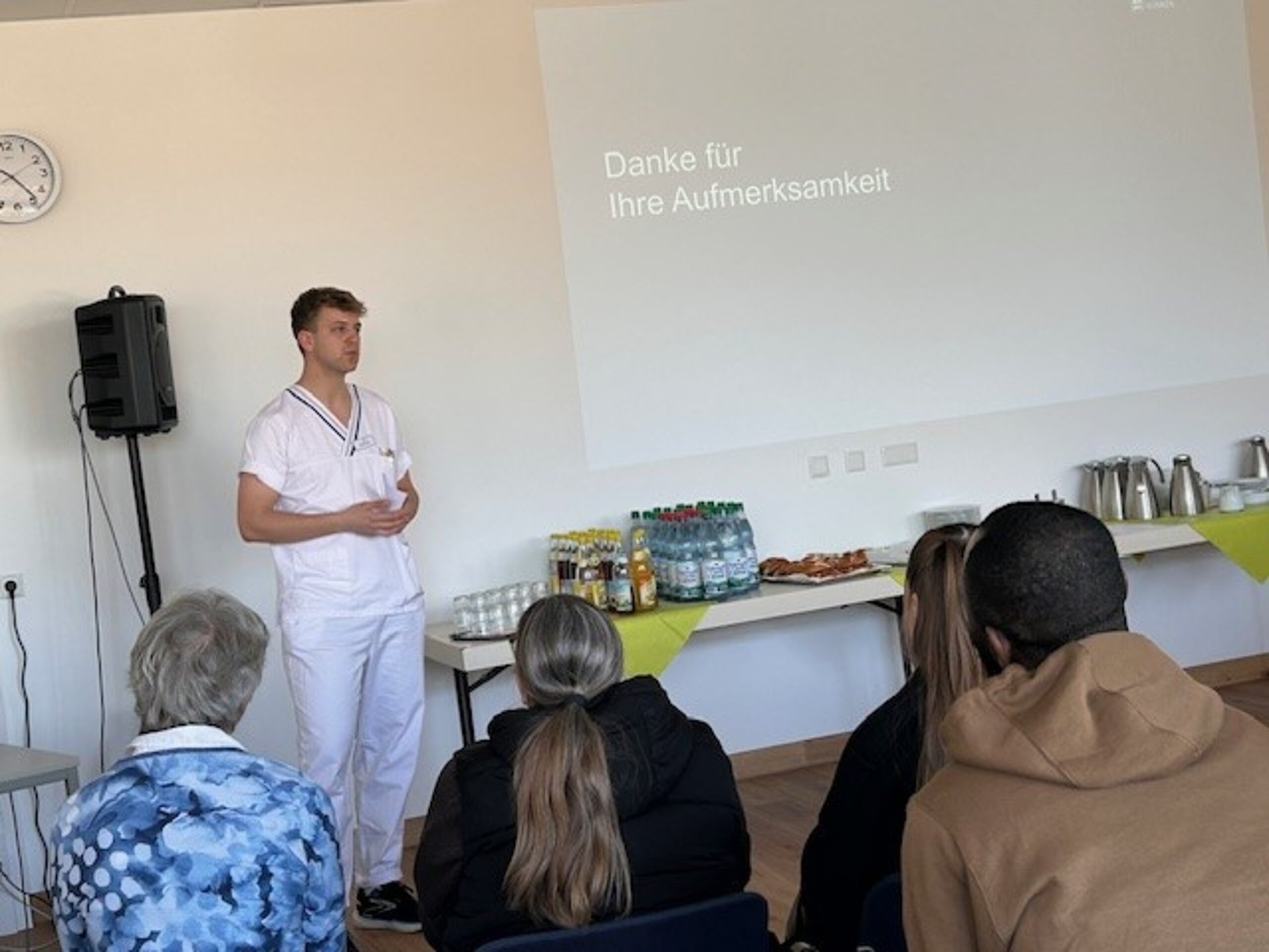 Der Besuch wurde von Adrian Müllerschön initiiert, einem ehemaligen Schüler des IfSB, der vor einigen Jahren seine Ausbildung zum Altenpfleger dort absolvierte und nun seit drei Jahren in der Rehaklinik tätig ist. Die Schüler zeigten großes Interesse an seinem Werdegang – angefangen von seiner Tätigkeit im Altenheim bis hin zu seiner aktuellen Position in der Patientenaufnahme und Diagnostik in der neurologischen Abteilung der Rehaklinik.